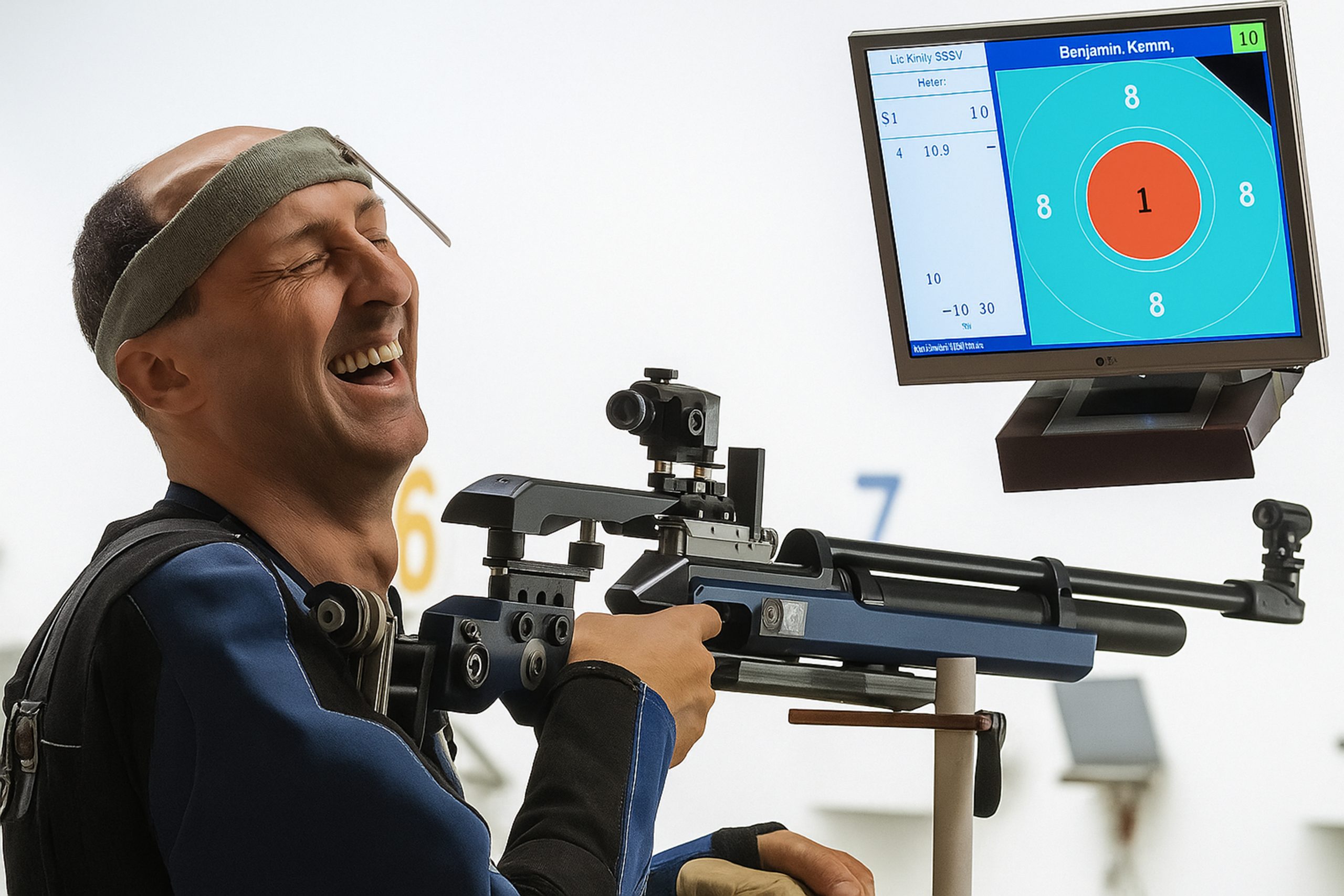 Bereits im Probeschießen sorgte er für Aufsehen: Mit seinem allerersten Schuss erzielte er eine 10,9 – präzisiert als 10,4 Teiler – ein makelloser Treffer.